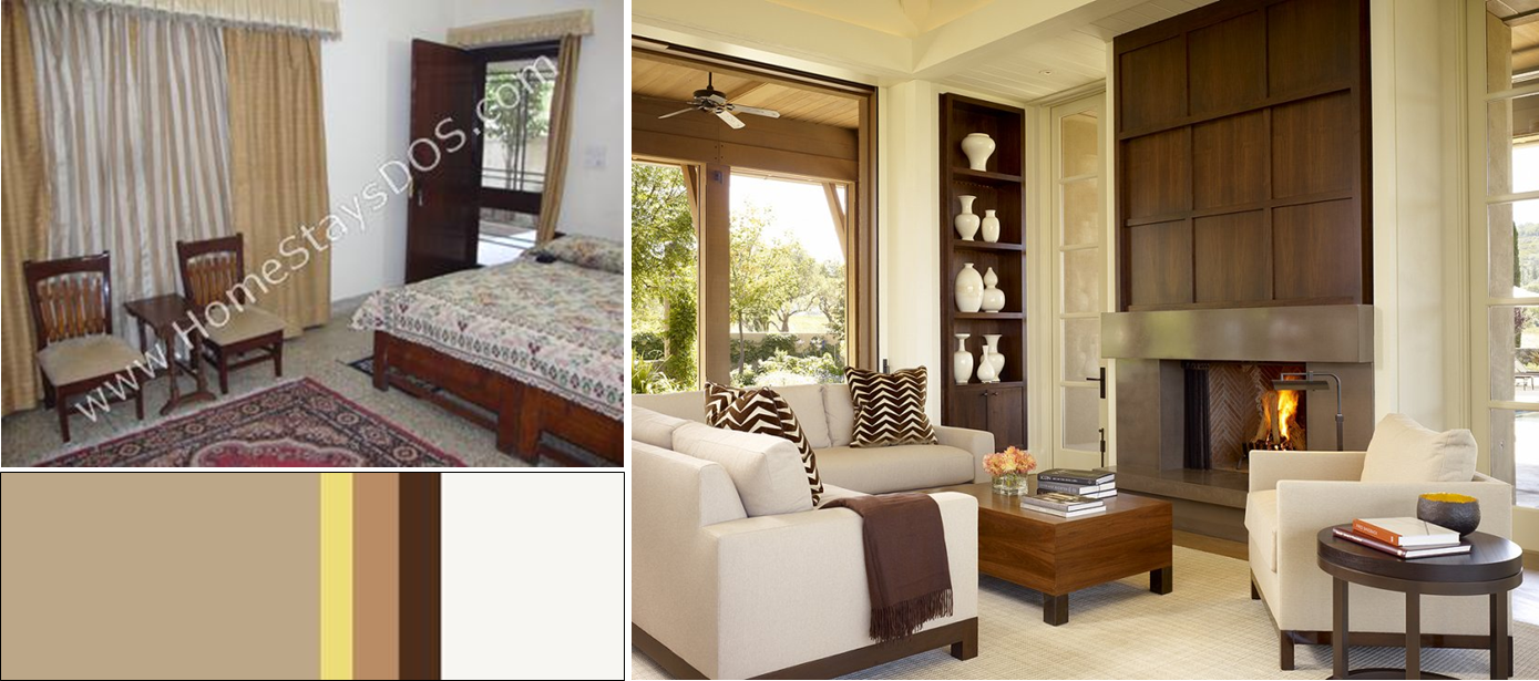 For the first option, we’ll look at taking the outdoorsy beige palette indoors, with an accent of green.