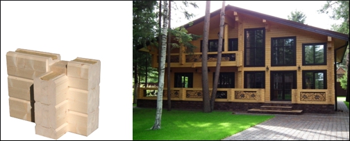 Our third type of wooden log houses are built with 120mm glued and laminated square logs. Here kiln dried lumber pieces are glued, pressed and laminated so that the wood do not crack and are perfectly tightened and fitted. The walls, both external and internal partitions are again 120mm thick wooden walls. These extra class Siberian pine and larch wood can be used to build single story small cottages up to ground+3 huge buildings.